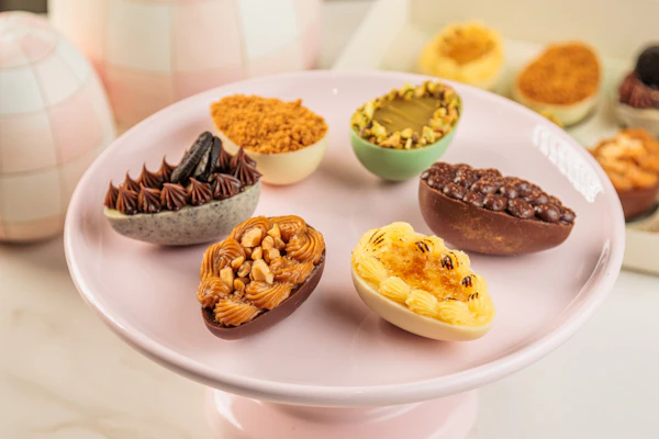Os ovos de colher, em meias bandas, são verdadeiras esculturas, construídas em camadas, com base cremosa, recheios densos e coberturas com texturas. São seis sabores que vão semear indecisão entre os chocolovers: Pistache, Favorito, Bûlée, Lótus Biscoff, Chocolatudo e Oreo. A solução ideal para conseguir provar todos é o Box Degustação, que traz as seis opções, em tamanho reduzido, acomodadas em uma linda caixa para dar de presente, ou se presentear.